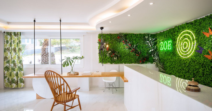 OE hotel, the Greek word life is here to give the inspiration of a new natural lifestyle hotel. Framed by the mountain, a complex of 12 buildings, in combination with the architecture and design of a small Greek ancient village, on top of the hill, offers an amphitheatrically view of the blue Aegean Sea. To experience the Greek hospitality “filoxenia”, through the soft beauty, full of character and comfort in touch with local culture.The natural life cues from the Greek floral and the Healthy food, spa time, yoga, music or excursions in nature – each moments of mindfulness to enrich your stay.Guest of ZOE hotel member of DHOTELS can join the facilities of Blue dream palace with special prices and packages.