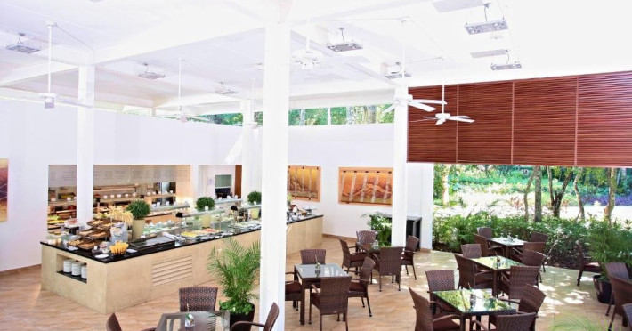 dispune de 4 restaurante, inclusiv restaurantul principal Yalku (bufet), restaurante a la carte (necesita rezervare): Maiko (bucatarie japoneza), Alux (bucatarie internationala), bar in hol, bar la piscina, snack bar, bar pe plaja