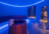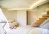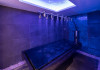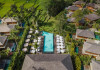 • piscina privata cu sezlonguri si umbrele pe terasa