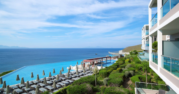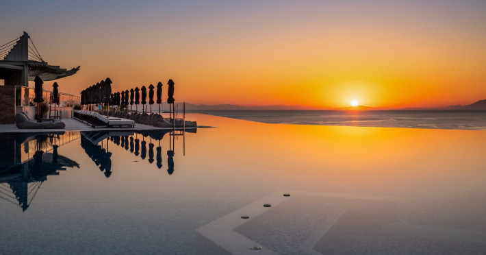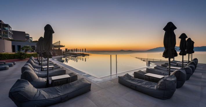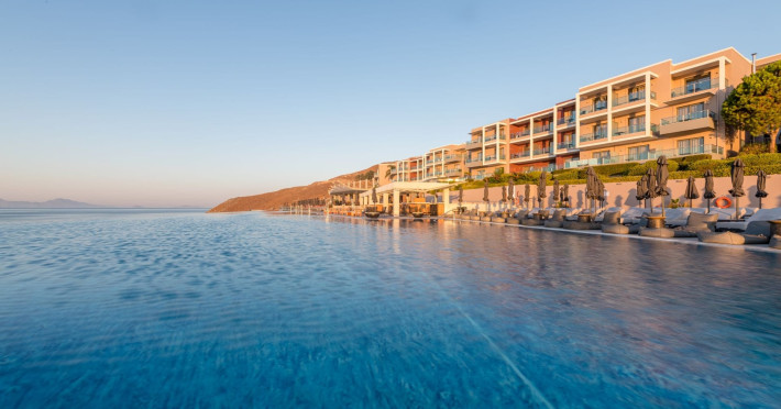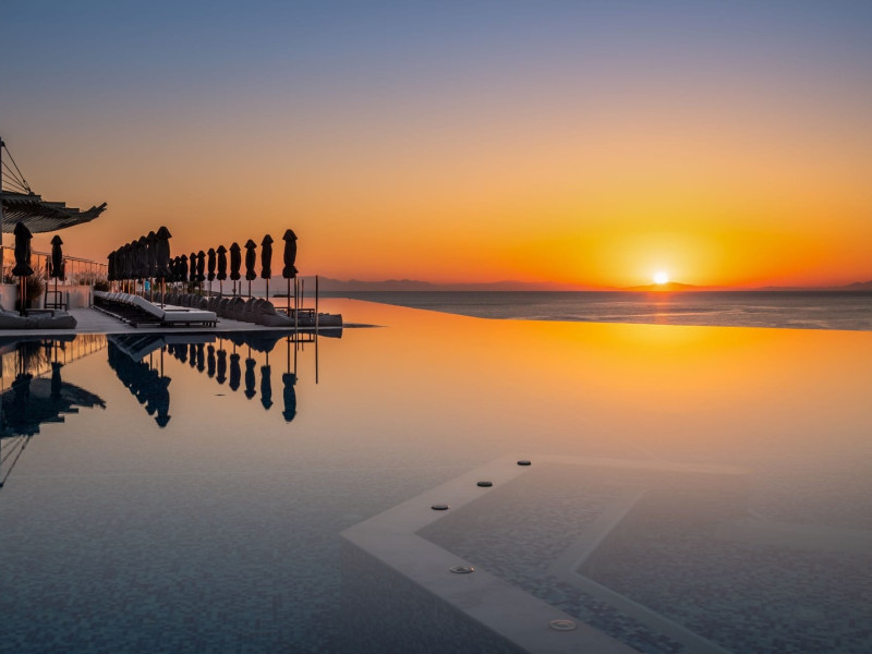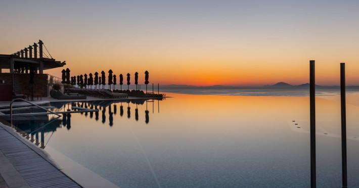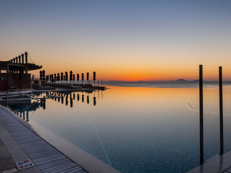 Michelangelo Resort amp; Spa is an exceptional 5 star hotel in the island of Kos with one of the biggest infinity pools. Nestled in the renowned coast of Agios Fokas and just a 30 min drive from Kos International airport (KGS), the luxurious beachfront resort offers superb views to the Aegean Sea. A stunning resort in Kos Island with exceptional charm, architecture and style, Michelangelo is the perfect hideaway to combine elegant accommodations with the finest cuisine and a soothing retreat for the senses. We invite you to discover an enchanting island in Greece. Constructed in 2009 and recently renovated (2023), covering approximately 45 acres of land, surrounded by modern gardens and room blocks most of them overlooking the sea. Peaceful environment located in a perfect spot for a seaside holiday.